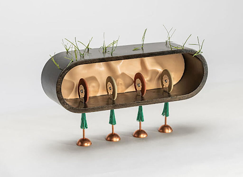 Materials: Elm, Astroturf, Latex, Typerwriter Erasers, Copper